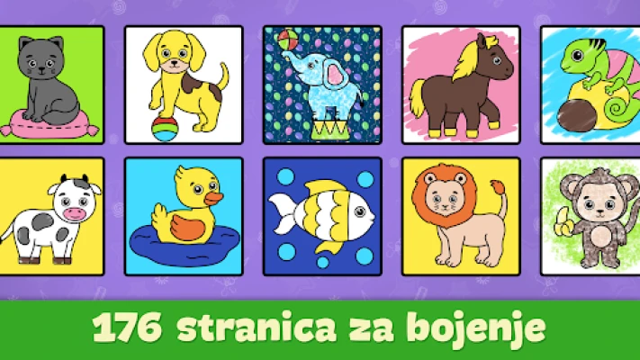 Crtanje za djecu: igre bojanja. Oslobodite dječju kreativnost uz ovu aplikaciju bez oglasa, idealnu za uzrast 2-5 godina. Razvija koordinaciju, prepoznavanje boja i maštu. Sadrži 176 stranica i 11 tema za zabavnu pripremu mališana za vrtić.