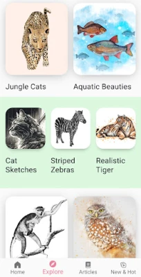 Zavirite u bogatu riznicu unutar "Naučite crtati životinje korak po korak", gdje vas očekuje mnoštvo poučnih video lekcija. Od crtanja i bojanja, preko skiciranja realističnih prikaza, pa sve do savladavanja 3D perspektive – svaki je aspekt crtanja životinja pomno obrađen. Istražite raznolikost životinjskog carstva, od umiljatih kućnih ljubimaca do veličanstvenih divljih zvijeri i fascinantnih morskih stvorenja. Aplikacija nudi detaljne upute za izradu skica olovkom, vodeći vas kroz svaki potez, čime se osigurava temeljito razumijevanje procesa.