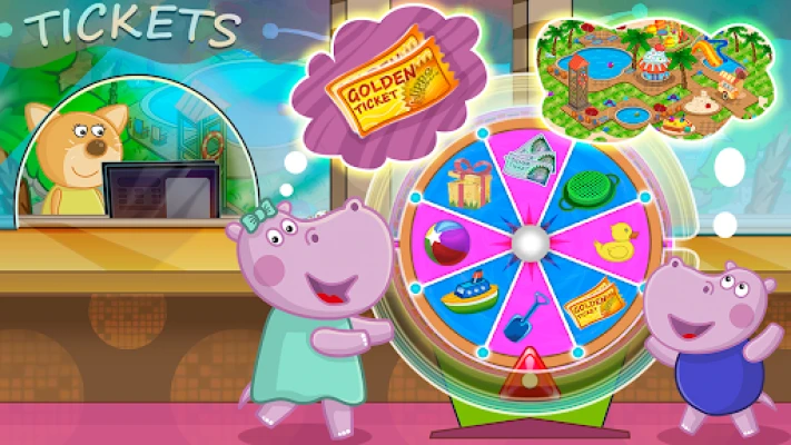 Pripremite se za ulazak u svijet gdje zabava nikad ne prestaje! Započnite svoj dan na blagajni, gdje možete osvojiti posebne bonuse na kotaču sreće koji će obogatiti vaše iskustvo. Zaronite u kristalno čiste bazene za osvježavajuće plivanje ili testirajte svoje granice s odvažnim skokovima u vodu. Pustite adrenalin da juri vašim venama dok se spuštate niz najluđe vodene tobogane, prolazeći kroz bezbroj razina i otključavajući sve više atrakcija. Simulator vodenog parka s Hippo jamči neizmjeran izvor sreće, uzbuđenja i veselja za vas i vaše mališane.